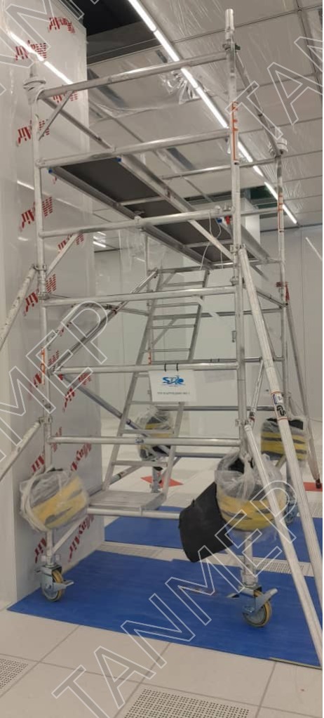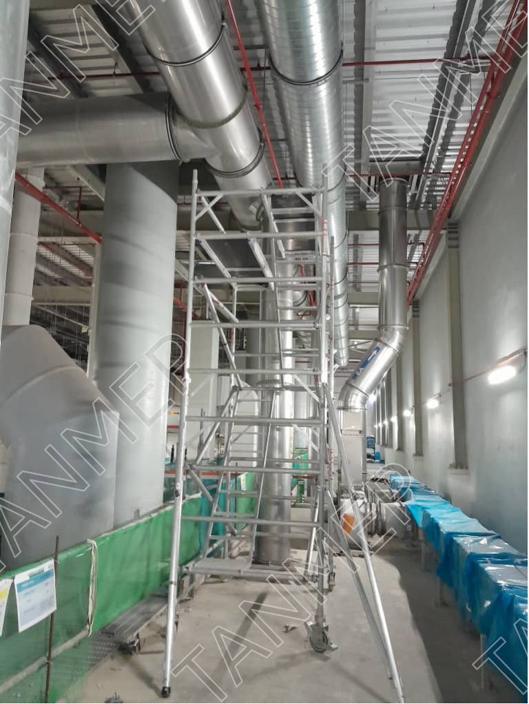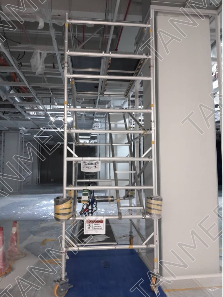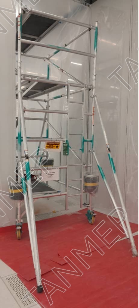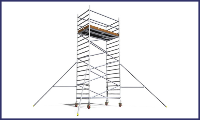 An aluminum mobile tower is a lightweight, portable scaffolding system equipped with wheels for easy movement across job sites. It provides a stable, elevated work platform and is ideal for tasks requiring frequent repositioning, such as maintenance or interior work.