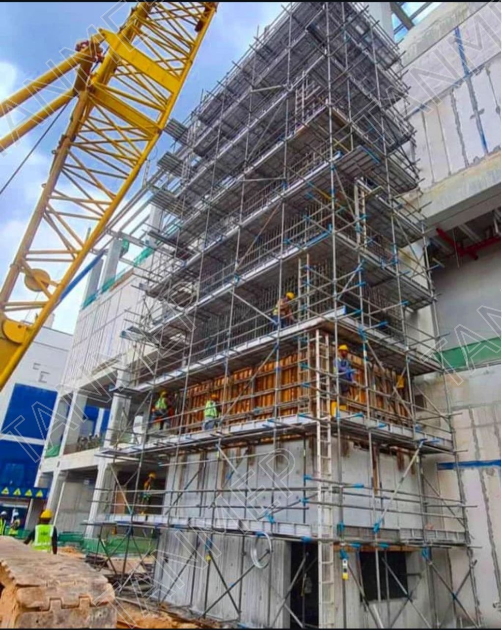 Frame scaffolding consists of a simple, prefabricated framework of welded steel or aluminum sections, used to create safe access platforms for workers. It is easy to assemble and commonly used for projects requiring quick and efficient setup, such as building maintenance and construction.