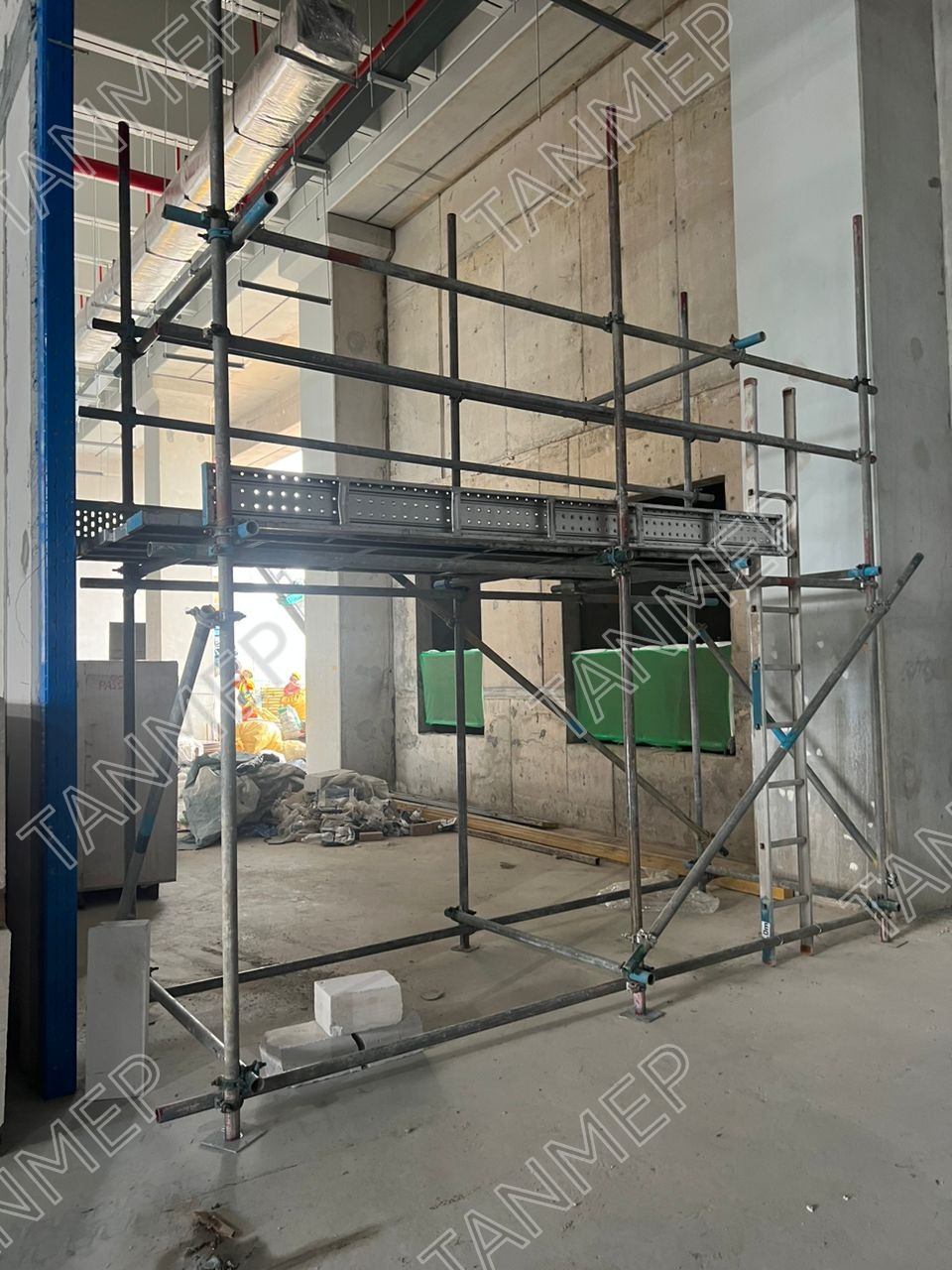 Frame scaffolding consists of a simple, prefabricated framework of welded steel or aluminum sections, used to create safe access platforms for workers. It is easy to assemble and commonly used for projects requiring quick and efficient setup, such as building maintenance and construction.